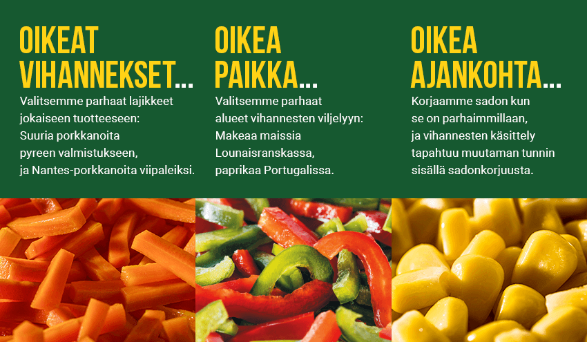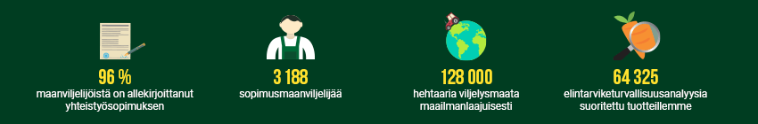 Maataloussopimus koskee myös toimittajia, kuljetusliikkeitä ja myyntitiimejä kaikissa maissa, joissa toimimme. Sopimuksen avulla takaamme vihannestemme korkean laadun ja parhaan mahdollisen jäljitettävyyden.